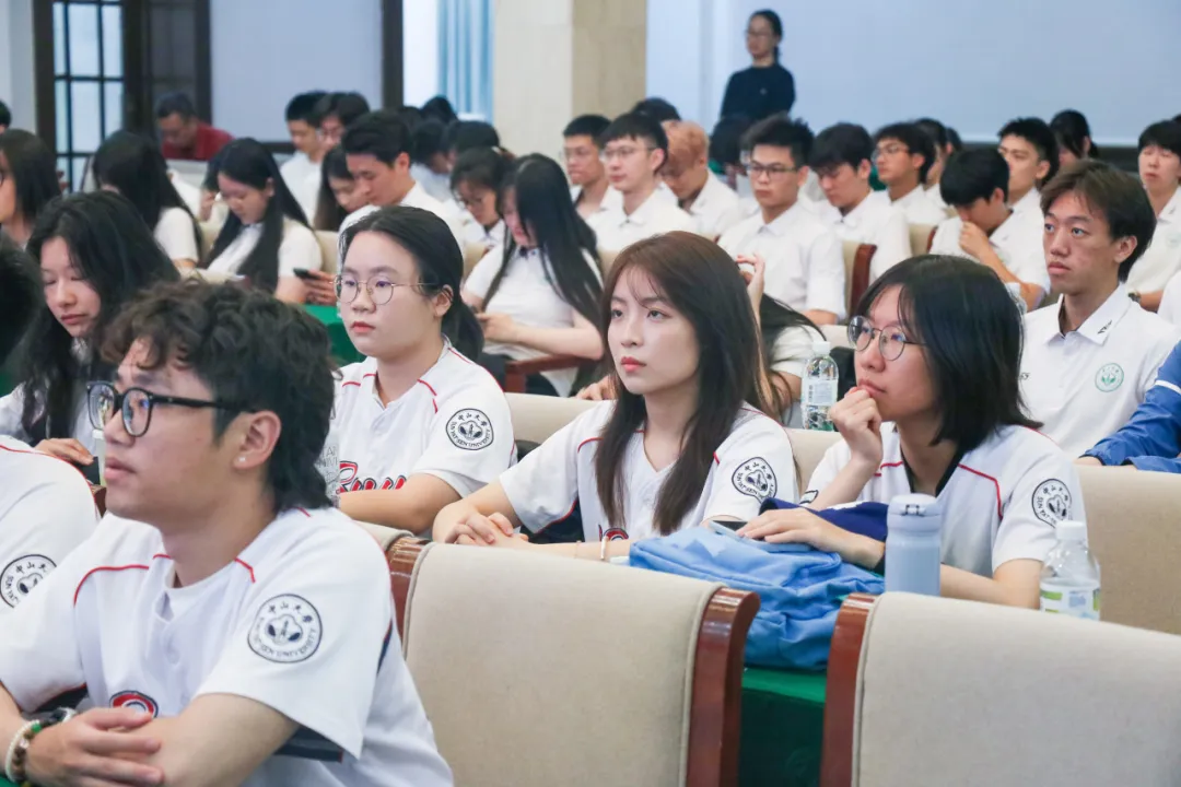 典礼伊始,全体嘉宾、师生肃立,齐唱中华人民共和国国歌。雄壮的旋律在怀士堂内回荡,庄严而热烈的氛围感染全场。